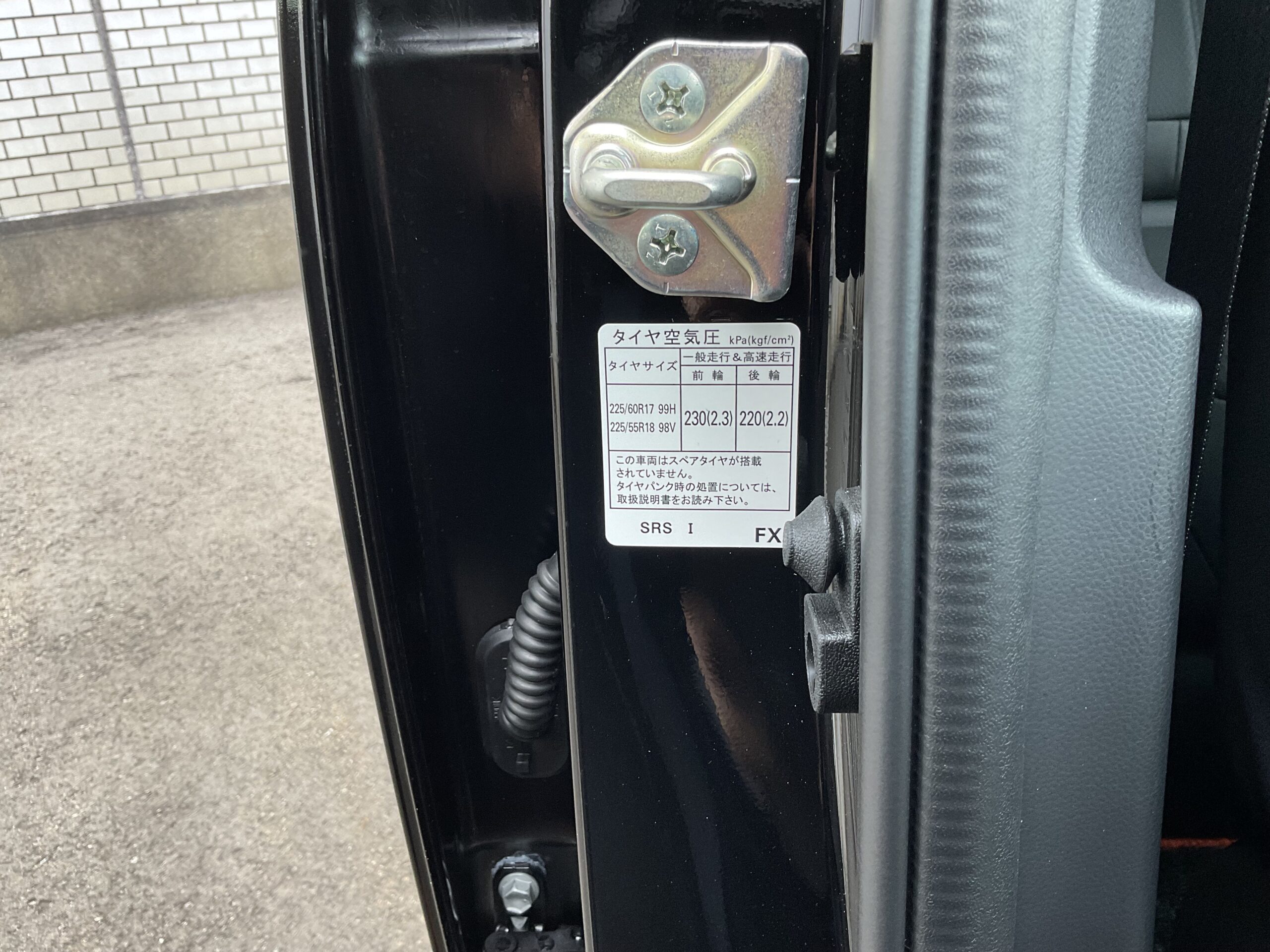 上の写真のように、運転席のドアを開けると適正空気圧が表記されたラベルが貼ってあります。このラベルを参考に調整してみてください。