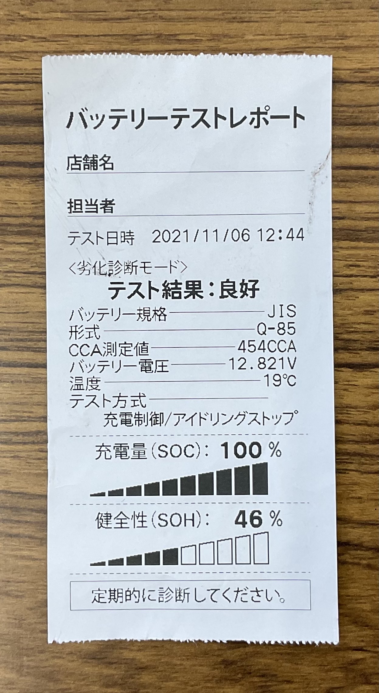 上の写真のように充電量が100%でも健全性が低い値だとバッテリー上がりの確立が高くなります。
