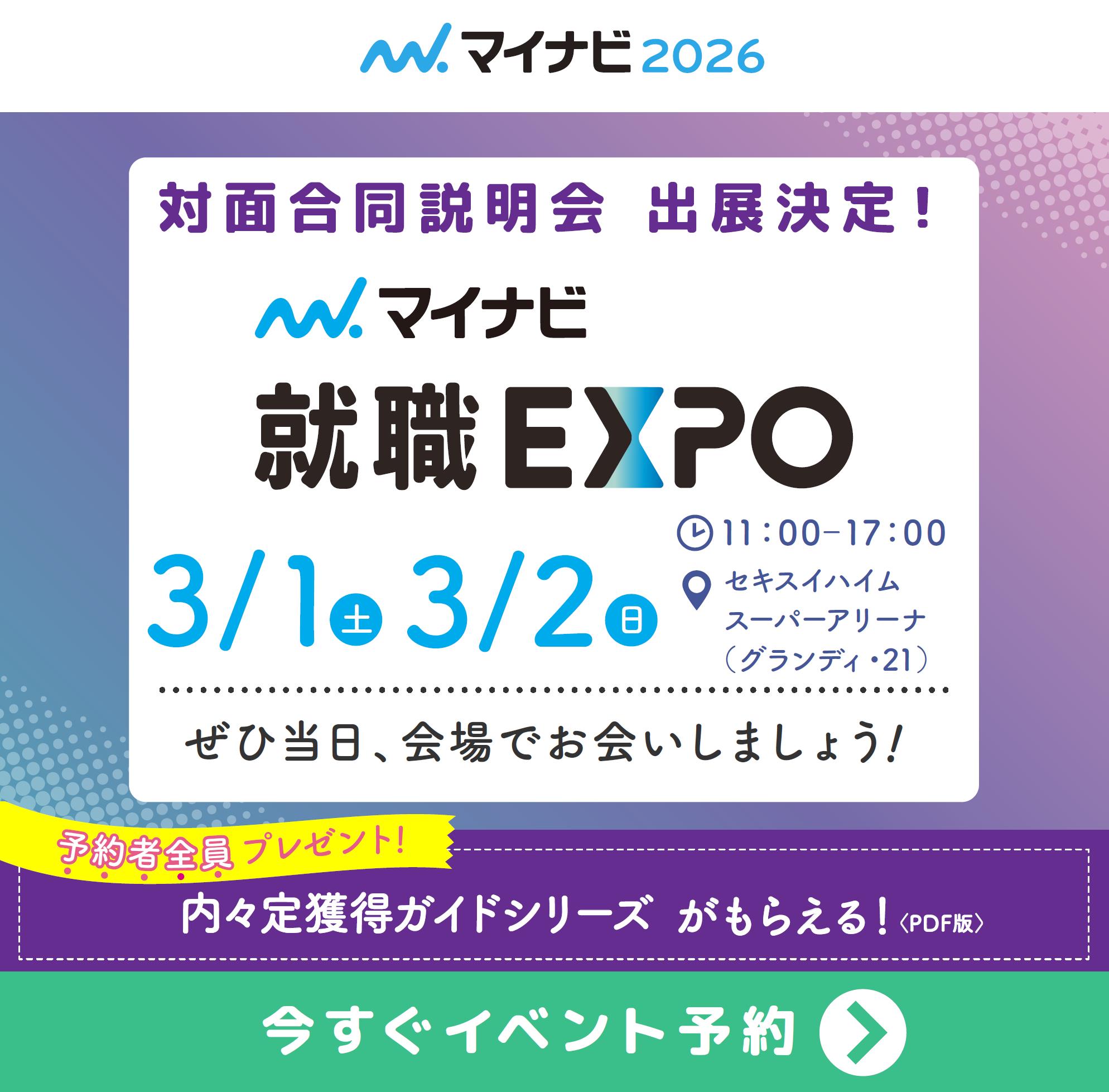 3月1日(土)セキスイハイムスーパーアリーナにて行われる『マイナビ就職EXPO』に出展します!ぜひ当社ブースへお立ち寄りください!