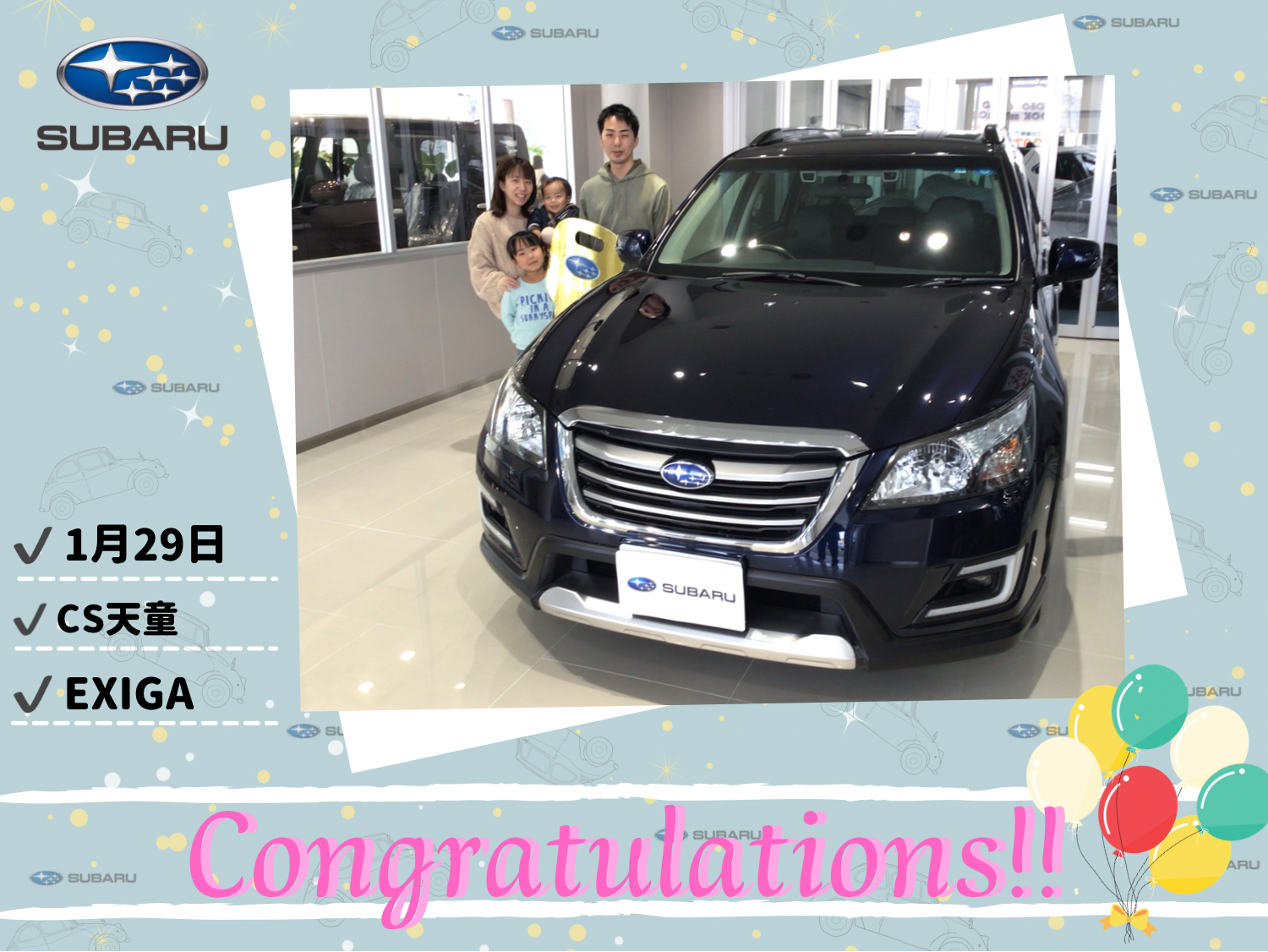 新しいエクシーガと共にご家族皆様の思い出を増やしていただければと思います。